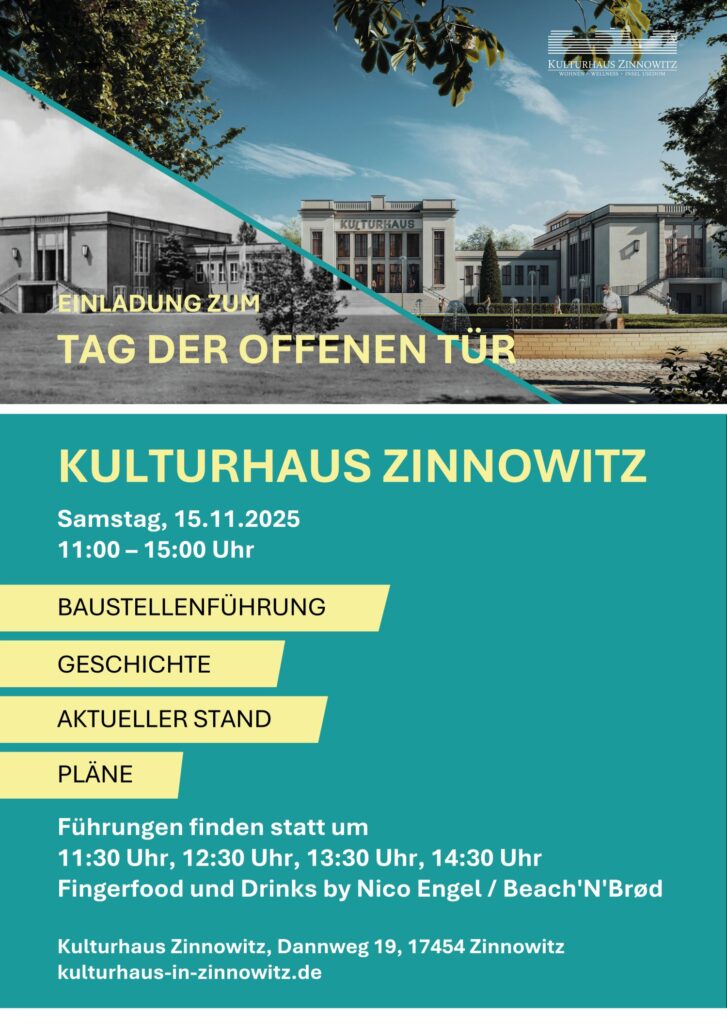 Das Kulturhaus Zinnowitz ist ein beeindruckender Monumentalbau, der eine bedeutende Rolle in der Identität der Anwohner auf der Insel Usedom spielt. Direkt im Zentrum des renommierten Ostseebades Zinnowitz gelegen, ist es seit über 150 Jahren ein beliebter Urlaubsort. Ursprünglich in den 1950er-Jahren erbaut, blieb das Kulturhaus nach der Wende lange Zeit ungenutzt.